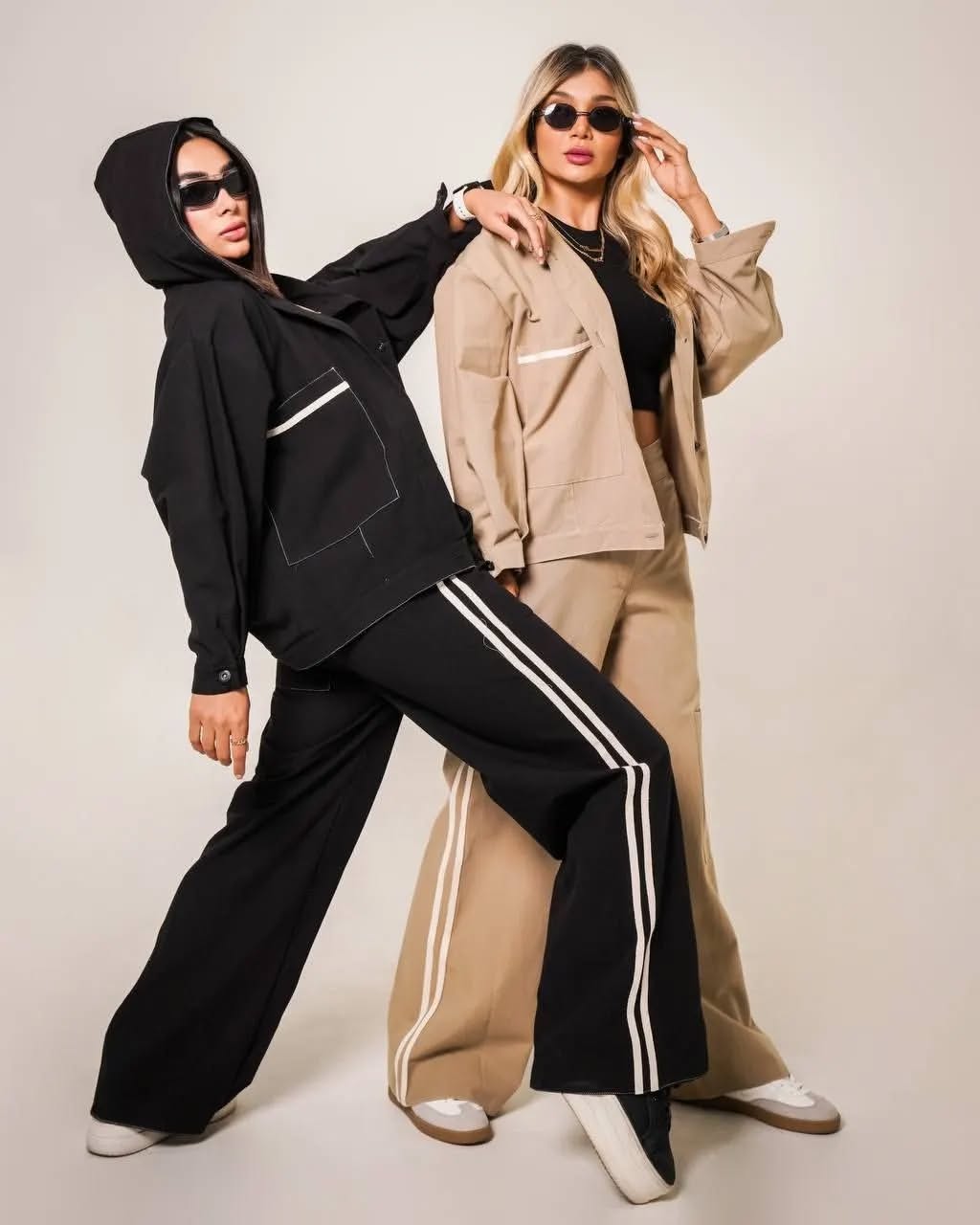 ست کت و شلوار کلاهدار جنس کتان رنگبندی موجود کرم و مشکی مناسب استایل روزانه و سایز ۳۸ تا ۴۲ بسیار شیک و راحت