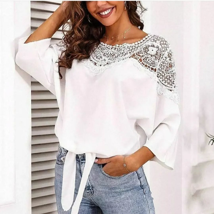 شوميز سرشانه گیپور وارداتی فری سایز در رنگ های کرم طوسی زیتونی مناسب سایز ۳۸ تا ۴۲ بسیار شیک جلوش گره میخوره هم با شلوار هم با دامن میتونید استایل کنید و در مهمانی بدرخشید