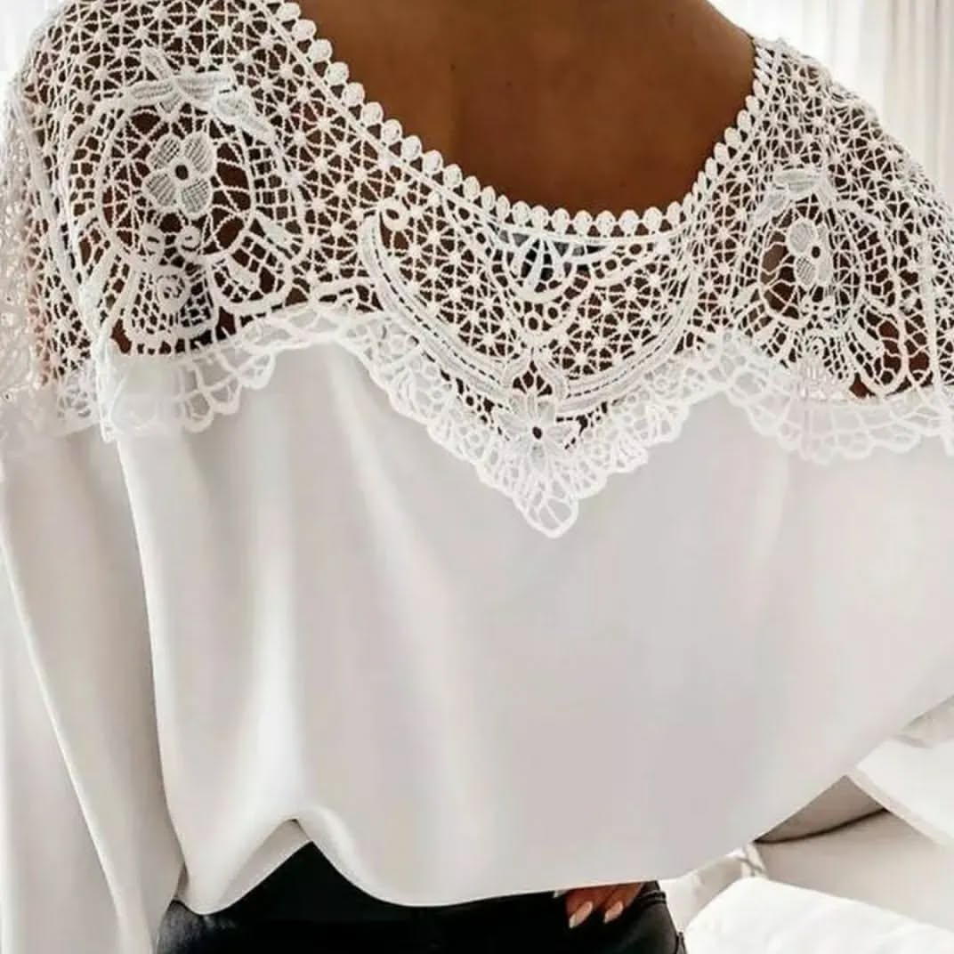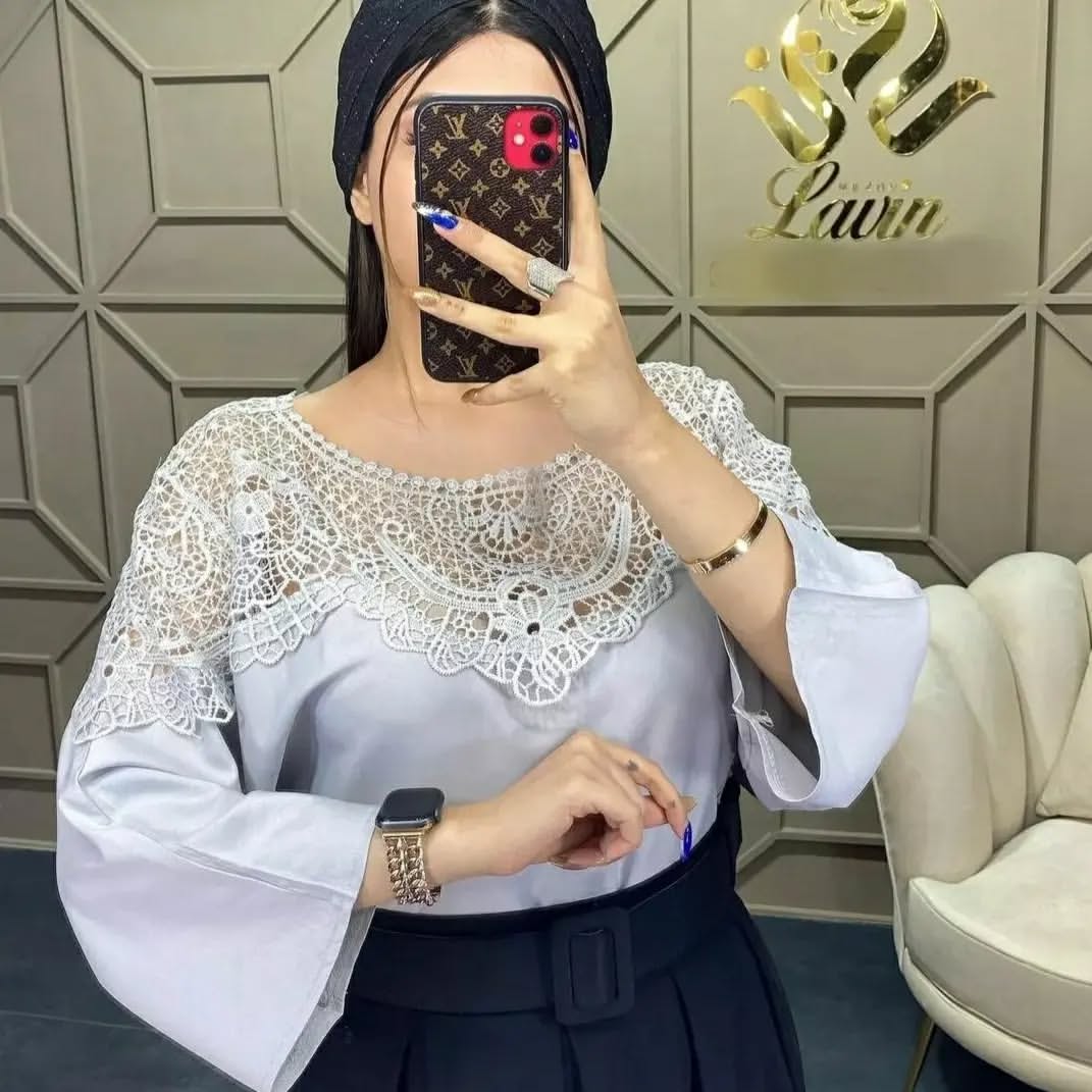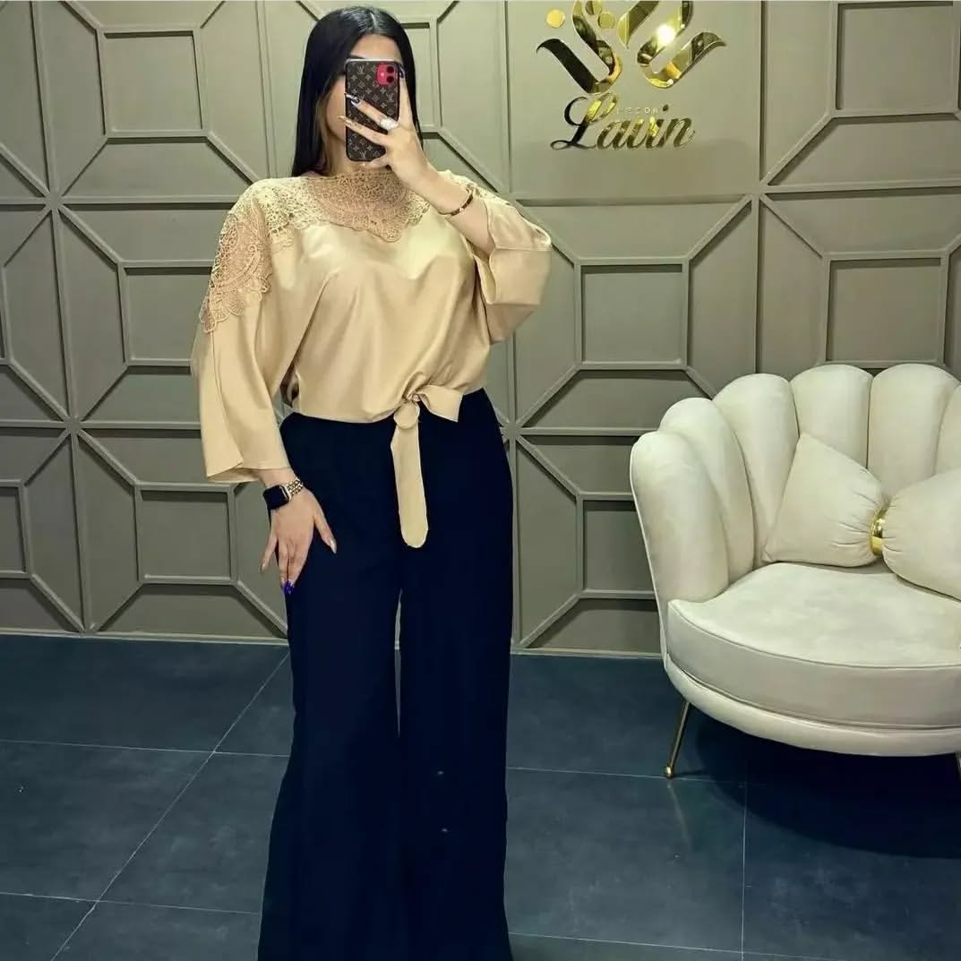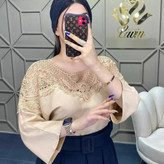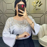 شومیز سرشانه گیپور فری سایز مناسب سایز ۳۶ تا ۴۲ رنگبندی کرم و طوسی