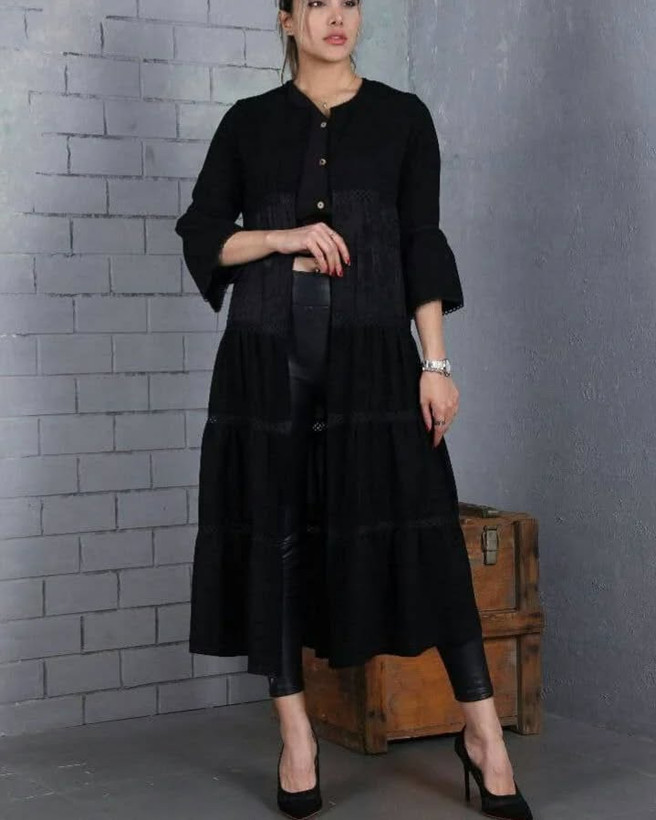 مانتو مشکی شانل و حریر مدل عروسکی مناسب مهمانی